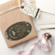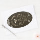 Braunes Oval-Etikett mit Wabenrübe und heraldischer Honigbiene. Honig wird in einem dekorativen, schiselierten metallischen Schriftart geschrieben.