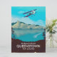 Queenstown New Zealand Vintage Reiseplakat eines Requisiten Flugzeug, das über einen tiefen See in der Nation fliegt.