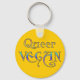 Que Vegan in elegantem schwarzem Text, mit etwas Regenbogen. Einfaches veganes Design.