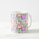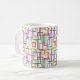 Diese Tasse hat ein Bauhaus-Design aus überlappenden Rechtecken in verschiedenen Farben.