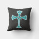 Koksgraues Kissen mit mehrschichtigem Türkiskreuz auf Front und Rückseiten. Hintergrundfarbe und Bildgröße können, durch das Klicken geändert werden "besonders anfertigen es!" Knopf. ANMERKUNG: Seien Sie sicher, Bildgröße zu ändern, um andere Kissengrößen zu passen.