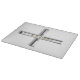 Dieses attraktive Glasschneidenbrett kennzeichnet eine Silber- und Goldquergraphik.