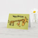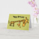 Der niedliche Cartoonaffe, der von der Giraffenhals-Geburtstagskarte baumelt, sagt tun etwas Spaß!