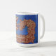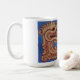 Traditionelles Bild des Mayaazteken versah Schlangengott, den ich vor kurzem malte, auf einer weißen Tasse mit Federn.