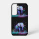A figure shaped by light stands calmly in a world that hums with energy. The elephant is both still and alive, its form traced in soft, glowing lines that shift gently across its surface.