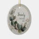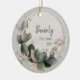 Experience the essence of quiet luxury with this beautifully personalized Christmas ornament. Featuring a delicate, botanical wreath in an elegant shade of green, this ornament brings a touch of nature-inspired sophistication to your holiday décor. The center is left open for a custom monogram or name, adding a personal touch to this timeless piece. Crafted with care, this ornament is the perfect blend of elegance and festive charm.