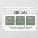 Ein Quilt ist eine Arbeit der Liebe, und oft wird er zu einem Familienerbstück. Wenn Sie einen Quilt schenken, verwenden Sie diese Karte, um dem Empfänger zu helfen, sich um sein wertvolles neues Quilt zu kümmern! Quilts werden besser, wenn sie geliebt werden, und diese Karte ermutigt den Empfänger, sie tatsächlich zu benutzen. Die Vorderseite der Karte sagt, wie man sein neues Quilt waschen, trocknen und speichern kann. Die Rückseite der Karte hat Platz, damit der Maker wichtige Informationen über den Stepptisch schreiben kann: wer ihn gemacht hat, wo er gemacht wurde, wann er gemacht wurde, mit welchem Muster er gemacht wurde, Details zum Quiltieren und materielle Details.