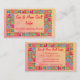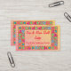 Mit dieser leicht anpassbaren Visitenkarte mit farbenfroher Quilt-Kunst können Sie Ihr Quilt- oder Quilt-Geschäft fördern. Ihre Informationen werden in einem farbenprächtigen Quilt Block Kunstrahmen auf einem gelben und korallenstrukturierten Hintergrund zentriert. Ihr Firmenname steht vorne und Ihre Geschäfts- oder Geschäftsadresse, E-Mail, Website und Telefonnummern sind auf der Rückseite. Die Farben Rot, Rosa, Gelb, Orange, Türkis, Blau, Korallen und Grün. Diese ursprüngliche Kunst wurde von Phyllis Dobbs entworfen und koordiniert sie mit anderen Produkten in diesem Laden. Die Grenze umfasst beliebte Blöcke wie die Blockhütte, den Stern, das Quadrat in einem Quadrat und andere, sowie einen applique Blume Block.