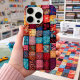 Helle und farbenfrohe, quilt-inspiriert Handy-Gehäuse mit aufwändigem Patchwork-Design. Ein perfektes Geschenk für Liebhaber von Quilts und Kunsthandwerk!