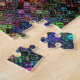 Dunkle, lebendige, komplexe abstrakte Quadrate auf einem phantastischen Feld aus Glitch und Neon gequilt.