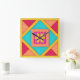 Die originale Quiltkunst besticht durch einen Platz in einem quadratischen Quilt-Block mit einer zentralen Blume in lebhaften und dynamischen Farben. Diese Uhr ist ein großartiges Geschenk für einen Quilter- oder Quilt-Liebhaber. Die hellen Farben sind orange, gelb, rosa und rot.