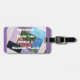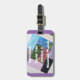 Ein Gepäckanhänger mit einem Steppdeckenhintergrund