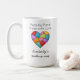 A cozy, handmade-inspired design featuring a colorful patchwork heart stitched together from vibrant fabric pieces. Above it, the phrase “Piece by Piece Made with Love” captures the care and creativity behind quilting, while the personalized touch with someone's name and then “quilting mug” adds warmth and individuality. —perfect for any quilting enthusiast.