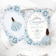 Baby blau und silber Quinceanera Feier Einladung. Features brünettes Mädchen in Ballkleid, Skript-Schriftart, Silberschmetterlinge, Aquarell-Rose und Tiara. Ideal für eine elegante Glasfeier im Prinzessinnstil. Personalisieren Sie Ihre persönlichen Daten. Gedruckte Zazzle-Einladungen oder Sofortdownload digitaler Druckvorlage.