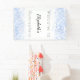 Ein Begrüßungsbanner für eine mädchenhafte und glamouröse Quinceañera, 15. Geburtstagsfeier. Weiße, mit hellblauen, babyblauen Konfetti dekorierte Decke. Personalisieren und fügen Sie einen Namen und Alter. Schwarze Buchstaben.