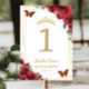 Quinceañera Birthday Red Floral Gold Schmetterling Tischnummer