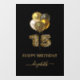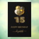 Für eine mädchenhafte und glamouröse Quinceañera, 15. Geburtstagsfeier. Schwarzer Hintergrund, mit Ballons verziert. Mit dem Text: Happy Birthday. Personalisieren und einen Namen hinzufügen. Der Name ist in dunklem Rose Gold geschrieben, mit einem modernen handgeschriebenen Stil mit Swashes. Nummer 15 ist mit einem angesagten Schriftart im Ballonstil, Leopardenmuster geschrieben. Um die Swashes behalten, löschen Sie nur den Beispielnamen, verlass die Leerzeichen oder Emoji's vor und nach dem Namen.