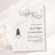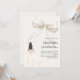 This sophisticated design features a large ivory bow adorned with delicate pearl details, paired with a graceful gown illustration.