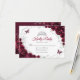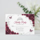 Burgund silber und weiße Blumen Quinceanera RSVP Antwortkarte. Merkmale: Schriftart, silberne Schmetterlinge, Aquarellrosen und Tiara. Perfekt für eine elegante Prinzessin Stil Glamour-Feier. Personalisieren Sie mit Ihren eigenen Details.
