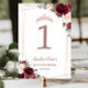 Quinceañera Burgundy Blush Rose Gold Tischnummer