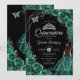 Quinceanera Emerald Green Silver Dress Floral Einladung