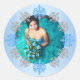 Quinceañera Ice Blue Silver Winter Snowflake Runder Aufkleber