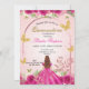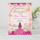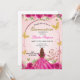 Elegant invitation for a debutante party in shades of Pink with touches of gold. Romantic floral design with an illustration of a dress.