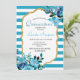 Quinceañera invitation Stripe Floral Blue Einladung