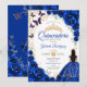 Quinceanera Königlich Blau Gold Blumen Einladung