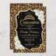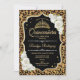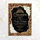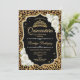 Leopard drucken Gold schwarze Quinceanera Feier Einladung. Features Tier cheetah Druck, Skript-Schriftart, weiße Rosen, Tiara und Konfetti. Klassisches Design mit Imitaten Glitzer Gold. Ideal für eine elegante Glamour.