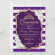 Lila goldweiße Quinceanera Feier Einladung. Enthält Streifen, Skript-Schriftart, Rose, Tiara und Konfetti. Klassisches lila Design mit Imitaten Glitzer Gold. Ideal für eine elegante Glamour.
