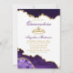 Moderne elegante Wasserfarbe Lila und Gold Marmor Agate Geode Quinceanera Einladung. Lila und goldene Schrift. Goldkrone.