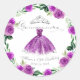 Quinceanera Lila Silver Gown Floral Classic Round Sticker