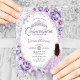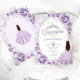 Lilac lila silber Quinceanera Feier Einladung. Features brünettes Mädchen in Ballkleid, Skript-Schriftart, Silberschmetterlinge, Aquarell-Rose und Tiara. Ideal für eine elegante Glasfeier im Prinzessinnstil. Personalisieren Sie Ihre persönlichen Daten. Gedruckte Zazzle-Einladungen oder Sofortdownload digitaler Druckvorlage.