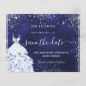 Bitte beachten Sie, dass dies Save the Date auf Flyer Papier und sehr dünn ist. Umschläge sind nicht enthalten. Für eine dickere Save the Date Karte (das gleiche Design) besuchen Sie bitte unseren Shop. Eine junge und trendige Save the Date für eine Quinceañera, 15. Geburtstagsfeier. Marineblau mit Imitaten, silberfarbenem Glitzer, Glitzern und Kleid. Die blaue Farbe ist ungleichmäßig. Personalisieren und fügen Sie Datum und Name/Alter hinzu. Der Text: Save the Date ist mit einem großen angesagten, handgeschriebenen Stilskript geschrieben.