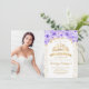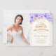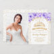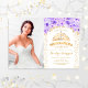 Quinceanera Geburtstagsfeier Einladung mit Ihrem Foto. Verfügt über goldene Konfetti, Tiara und lila Rose. Klassisches Blumendesign mit verglasten Imitaten Glitzer Gold. Ideal für eine elegante Feier.