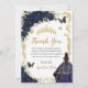 Quinceañera Navy Blue Floral Gold Princess 15 16 Dankeskarte