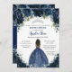 Quinceañera Navy Blue Floral Silver Brown Princess Einladung