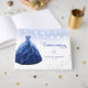 Sammle den Namen und die Botschaften deines Gastes in diesem wunderschönen marineblau-weißen Design, mit Saitenleuchten oben vorne und Foto hinten. Prinzessin gown in marineblau mit blauem funkelnd Glitzer. Script Quinceañera Text mit Name und Datum, Wirbles Motiv und Glitzer unten rechts.