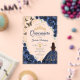Navy, gold and white Quinceanera celebration invitation. Features brunette girl in ball gown dress, script font, gold butterflies, watercolor roses and tiara. Perfect for an elegant princess style glam celebration. Personalize with your own details. Stylish transparent or frosted acrylic invitations.