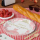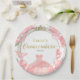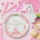 Entdecken Sie den zauberhaften Reiz Ihrer Quinceanera-Feier mit einzigartigen, rosafarbenen Tellern zum Thema Kleidung. Diese maßgeschneiderten Teller, inspiriert von üppig rosafarbenen Blumen und skurrilen Schmetterlingen, zeigen nicht nur die Vorfreude auf das Ereignis, sondern auch das atemberaubende rosa Quinceanera Kleid. Sie werden ergänzt durch Konfetti-Details und einen Tiara-Akzent, der die feierliche Erhabenheit des besonderen Tages verkörpert.