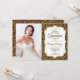Quinceanera Party Einladung mit Ihrem Foto. Features leopard cheetah Druck, Skript-Schriftart, Tiara und Konfetti. Klassisches Design mit Imitaten Glitzer Gold. Ideal für eine elegante Prinzessin-Themenfeier.
