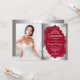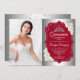 Quinceanera Party Einladung mit Ihrem Foto. Enthält Skript-Schriftart, Rosen, Tiara und Konfetti. Klassisches rotes Design mit Imitaten Glitzer Silber. Ideal für eine elegante Feier.
