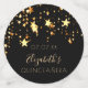 Girly und feminine Konfetti für eine Quinceañera, 15. Geburtstagsfeierlichkeiten. Ein stilvoller schwarzer Hintergrund mit tropfenden Sternen in goldenen Imitaten. Vorlagen für Datum und Name/Alter. Goldene Buchstaben. Einige konfetti-Chips mit Namen und Datum, andere mit dem Text: Happy Birthday geschrieben mit einem trendy handhabeten Skript mit Swashes.