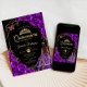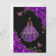 Purple black and gold Quinceanera celebration invitation. Features brunette girl in ball gown dress. script font, gold butterflies, watercolor roses and tiara. Perfect for an elegant princess style glam celebration. Personalize with your own details. Printed Zazzle invitations or instant download digital printable template.