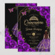 Quinceanera Purple Gold Butterfly Dress Floral Einladung