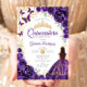 Quinceanera Purple Gold Floral Einladung