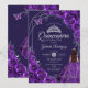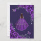 Purple and silver Quinceanera celebration invitation. Features brunette girl in ball gown dress, script font, silver butterflies, watercolor roses and tiara. Perfect for an elegant princess style glam celebration. Personalize with your own details. Printed Zazzle invitations or instant download digital printable template.
