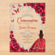 Red silver Quinceanera celebration invitation. Features brunette girl in ball gown dress, script font, silver butterflies, watercolor roses and tiara. Perfect for an elegant princess style glam celebration. Personalize with your own details. Stylish transparent or frosted acrylic invitations.