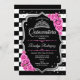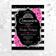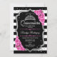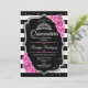 Silber schwarz rosa Quinceanera Feier Einladung. Enthält Streifen, Skript-Schriftart, pastellrosa Rosen, Tiara und Konfetti. Klassisches Rosa-Design mit Imitaten Glitzer Gold. Ideal für eine elegante Glamour.